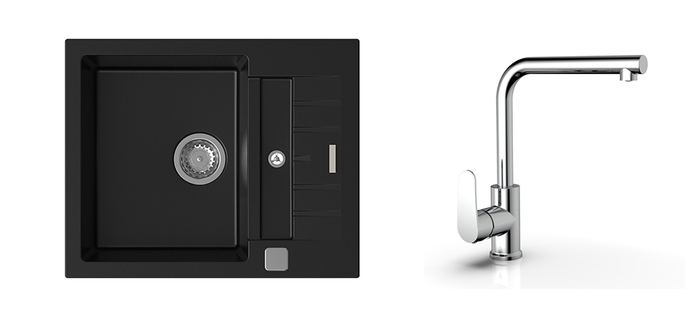 K-StrongSinks S3 Set sink Vardar 615x500mm granite black + Bater. Stréva chrome
