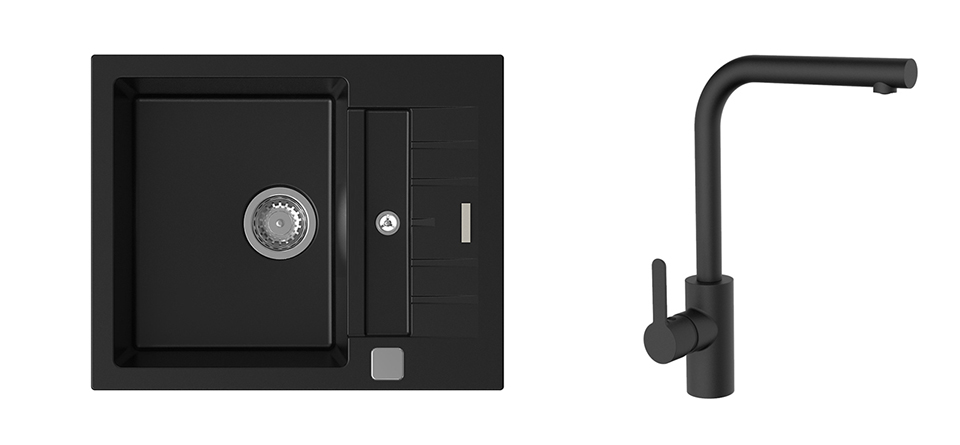 K-StrongSinks S3 Set sink Vardar 615x500mm granite black + Tap Ipoly black