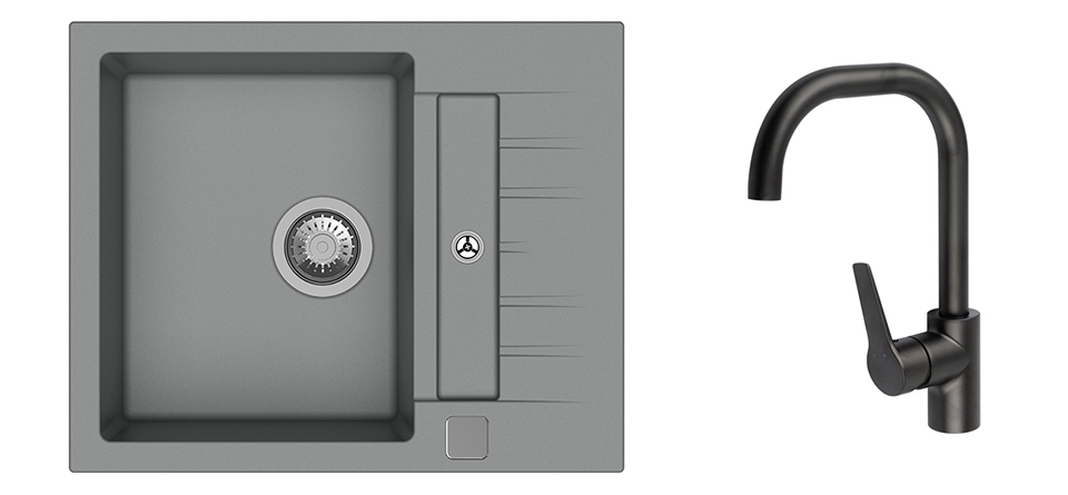 K-StrongSinks S3 Set sink Vardar 615x500mm granite grey + Tap Garonne black