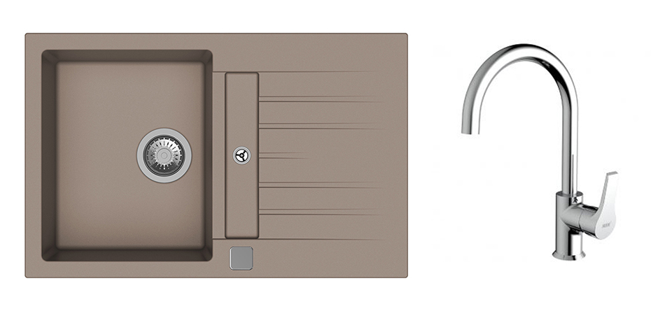 K-StrongSinks S3 Set sink Vardar 780x500mm granite beige + Tap Rhona chrome