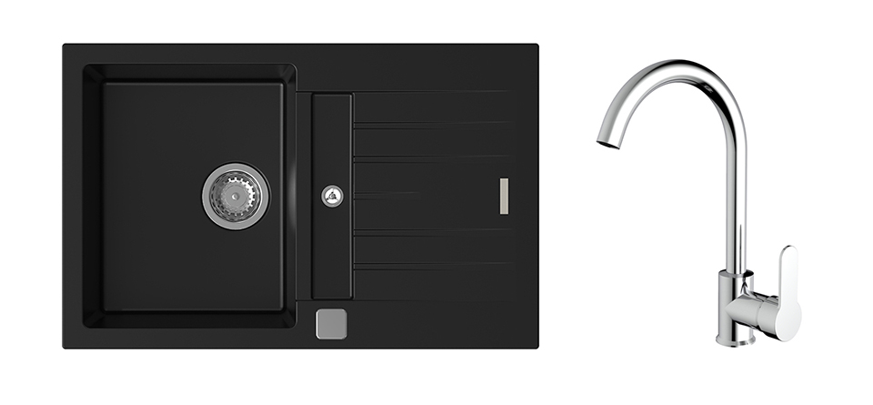 K-StrongSinks S3 Set sink Vardar 780x500mm granite black + Tap Seina chrome