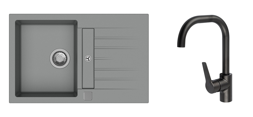 K-StrongSinks S3 Set sink Vardar 780x500mm granite grey + Tap Garonne black