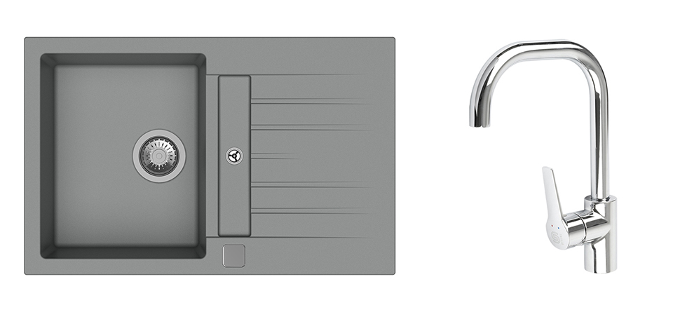 K-StrongSinks S3 Set sink Vardar 780x500mm granite grey + Tap Garonne chrome