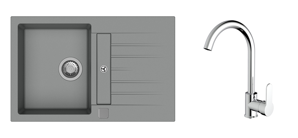 K-StrongSinks S3 Set sink Vardar 780x500mm granite grey + Tap Seina chrome