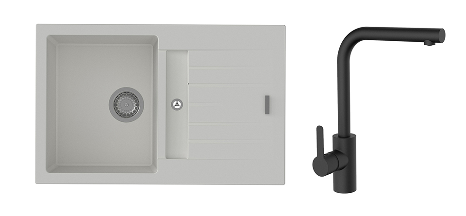 K-StrongSinks S3 Set sink Vardar 780x500mm granite white + Tap Ipoly black