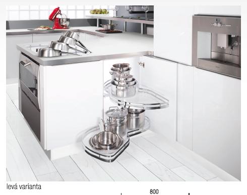 Set of two Arena CLASSIC chrome shelves for the solution of the lower corner cabinet (so-called blind corner) LeMans II. Bottom with Anti-slip surface treatment. It is possible to add an external damper to the LeMans II which tightens the shelf, dampens it when closed and prevents shock. For an 800 mm body. Mounting the damper on the outer arm. Internal dimensions of the body: width: 764, depth 500, height: 600-750. Minimum door size 361-368mm. Mounting rod + mounting on the side of the body - 160132, external damper for the right variant - 318463. Shelf load 25kg.