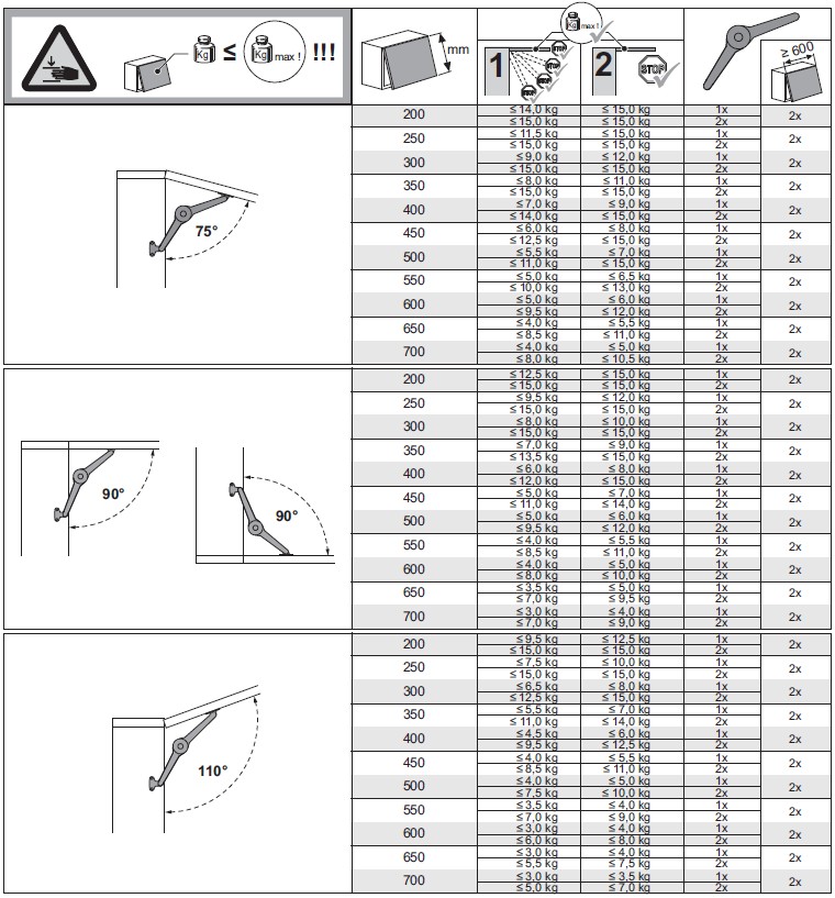 Adjustable DUO FORTE flap for larger and heavier doors. Opening angle 75, 90 and 110 °. Possible for upper and lower door tilting (by turning the arms). It is necessary to order the mounting of the door and the body (135019 + 135021 or 135024 for aluminum frame)