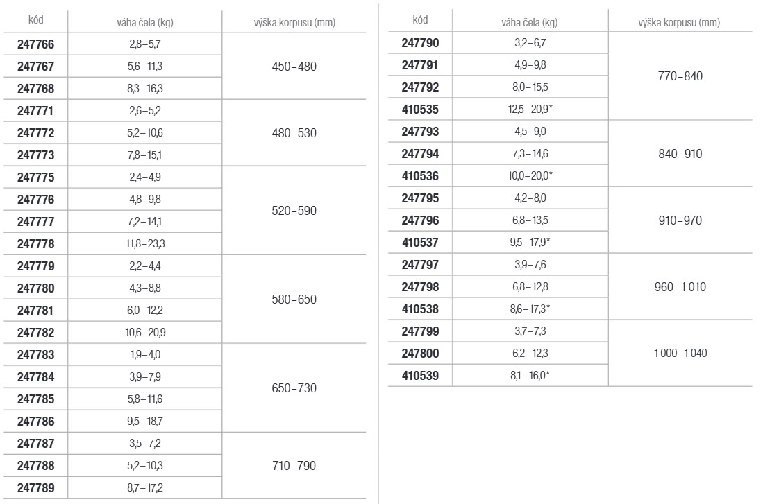 Hip-up fitting with velvet movement and easy assembly for broken fronts. The kit includes a pair of swingarms and a front fitting for the arms. Designed for body height 770-840mm. Forehead weight 8 - 15.5 kg. It is necessary to add caps and upper and central hinges.