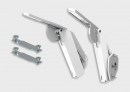 Complete set for hinged top cabinets without using hinges with minimalist hardware dimensions. Integrated opening angle limiter 107°=>90°.