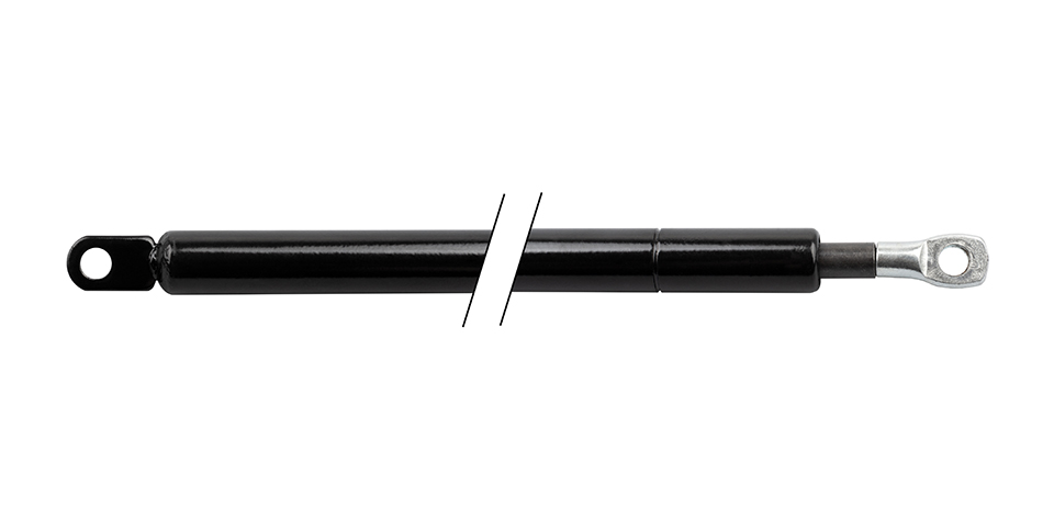 Gas spring for pulling out a monitor or TV with a handleless opening. Axial spacing of installation eyelets in extended position 685mm, in retracted position 410mm, extension length 275mm, activation press length approx. 10mm. Piston body diameter 18mm, piston rod diameter 10mm. Force 200N (approx. 20kg). Ideal in combination with 350mm ball-bearing slides (92002). Smart product: extend TV, monitor, anything you want to keep hidden, without the need to connect to electricity. The combination of these gas springs and full-extension ball-bearing slides lets you do just that, and at a great price. Everything works on a mechanical basis.