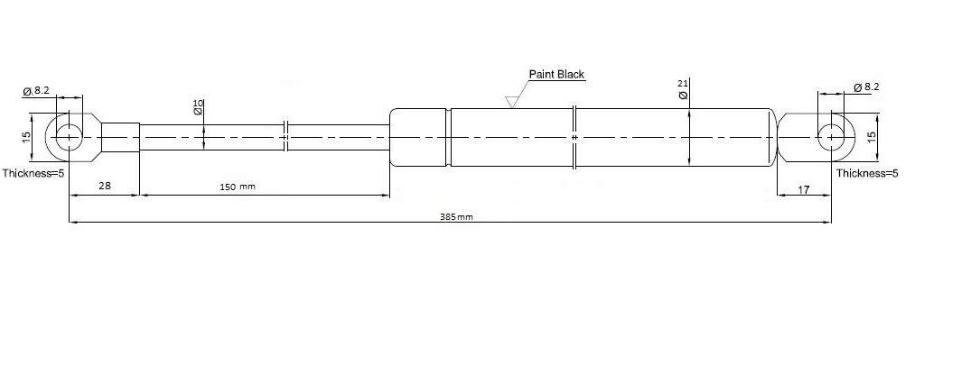 Reinforced bed fitting for gas pistons, black