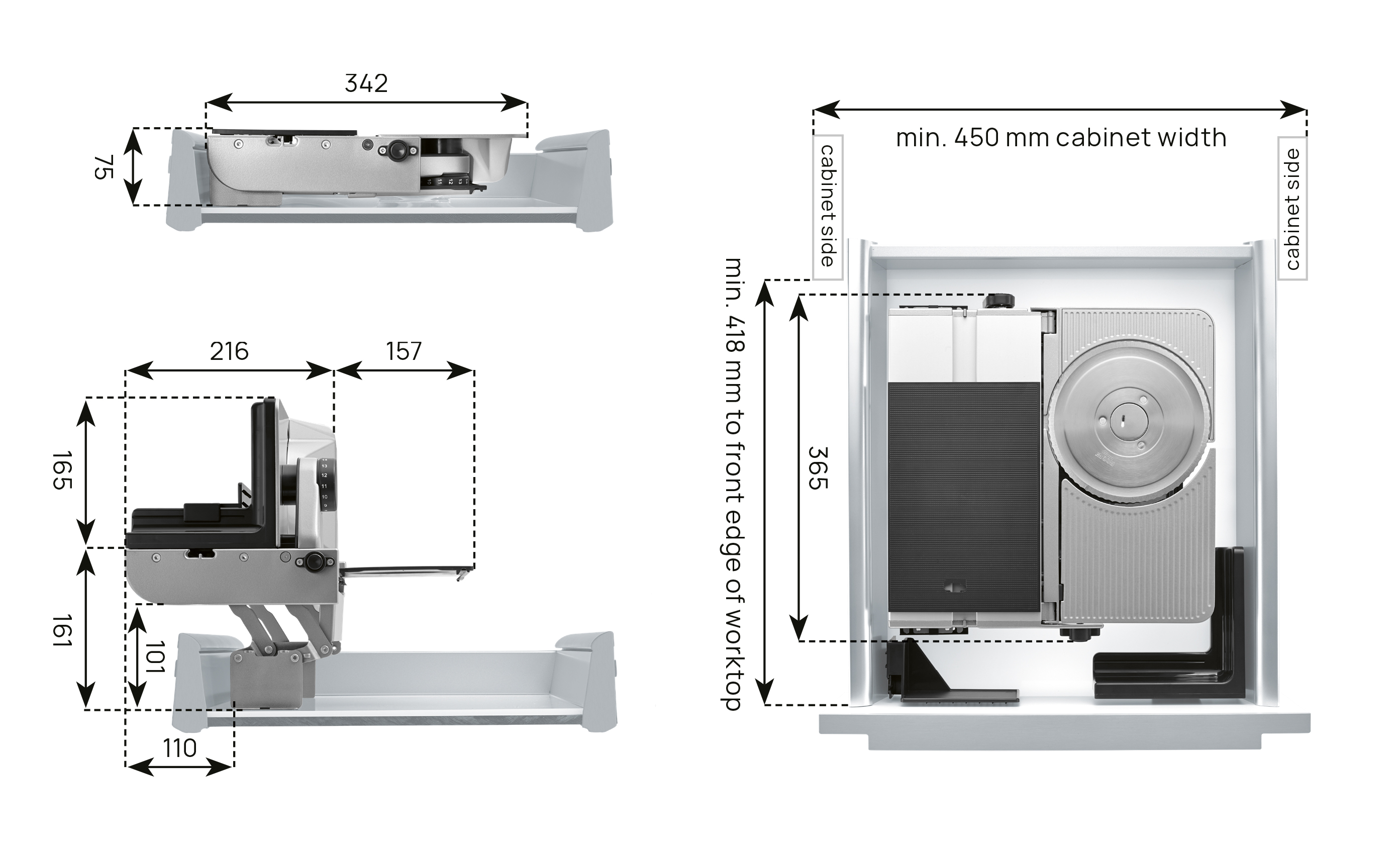 Universal built-in slicer H: 75 mm W: 342 mm D: 365 mm