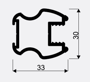 Mounting profile for DTD material 10mm or mirror/glass (4mm 4.5mm, 6mm, 6.4mm and 8mm). For glass, it is necessary to use a seal according to the thickness of the material. Surface finish - black structural lacquer. Finish sample - 526554 SEVROLL Alfa II grab bar 100mm black structural (sample). . Before actually installing the door leaves, we recommend that you read the information in this link to avoid possible problems such as bending: