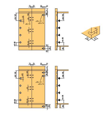 Fittings set for two folding doors with bottom guide. Maximum size of one wing-panel - 300 x 2000 mm. Right/left version.