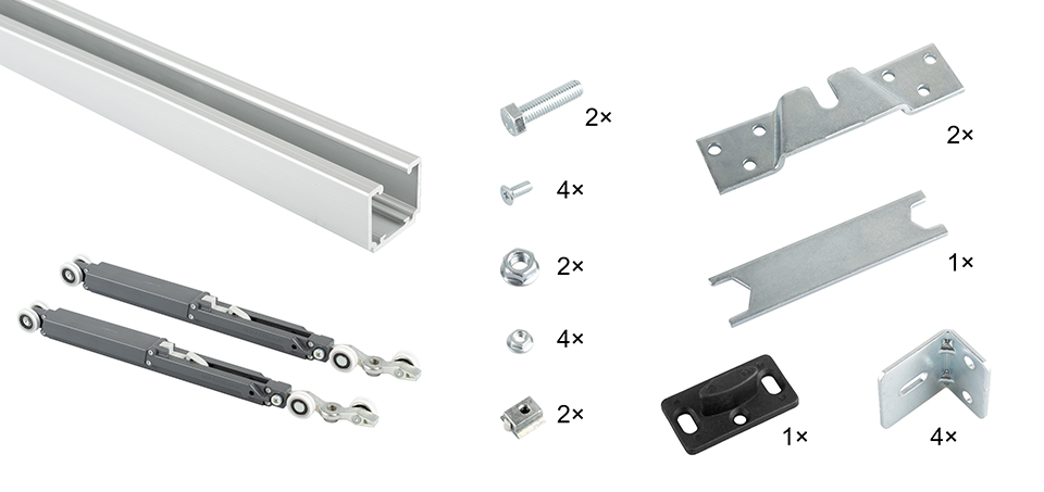 SISCO posuvné interiérové kování sada pro 1 křídlo, vedení 1,5m, 40kg, 2x tlumič