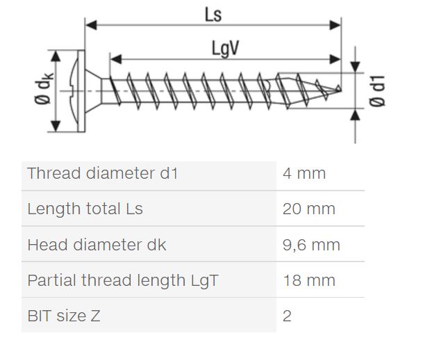 bit type: Cross recess PZ 2
