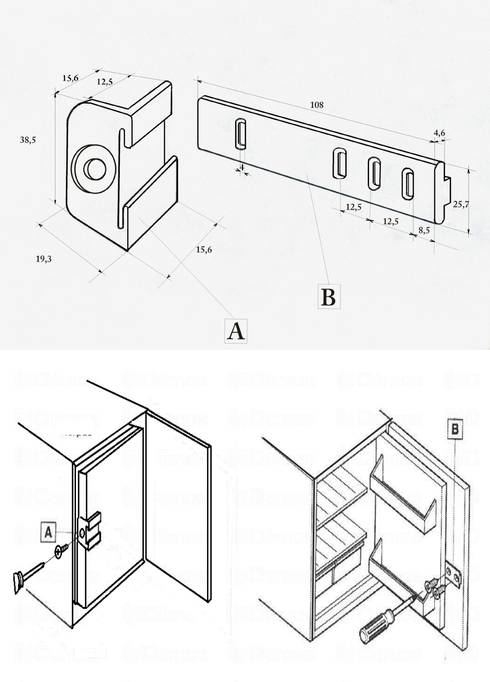 Material: plastic Color: white 2 fittings per door