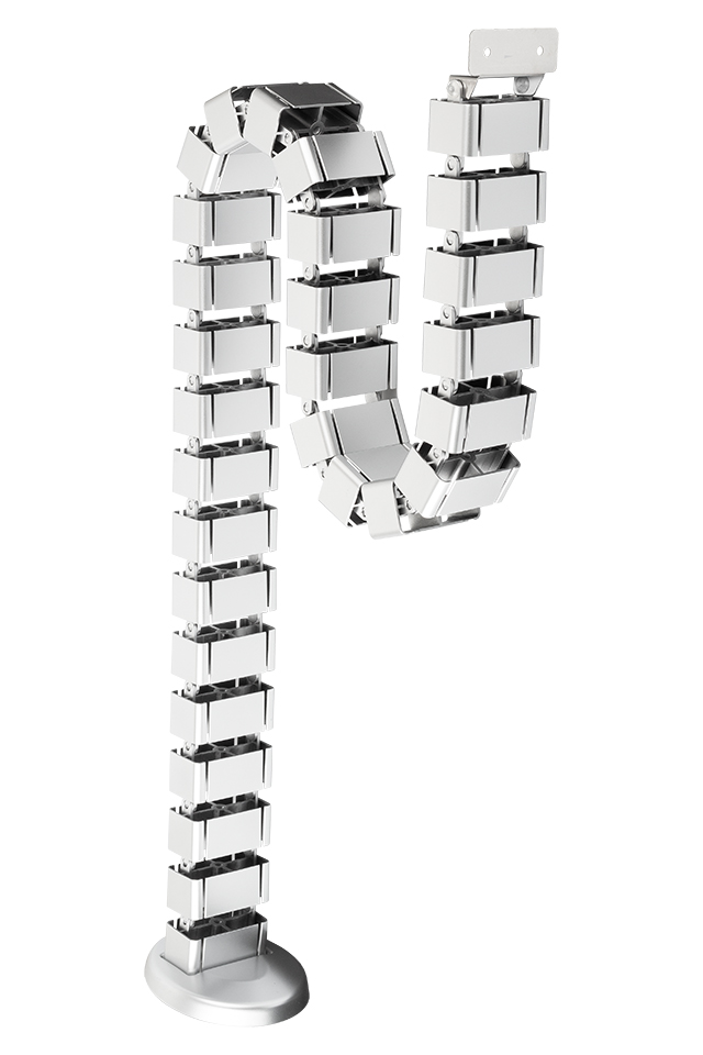 Vertical cable management. Length 1.26 m. Silver color. High flexibility when adjusting the desk height. Ideal for electrically height-adjustable frames.If necessary, the cable can be shortened.