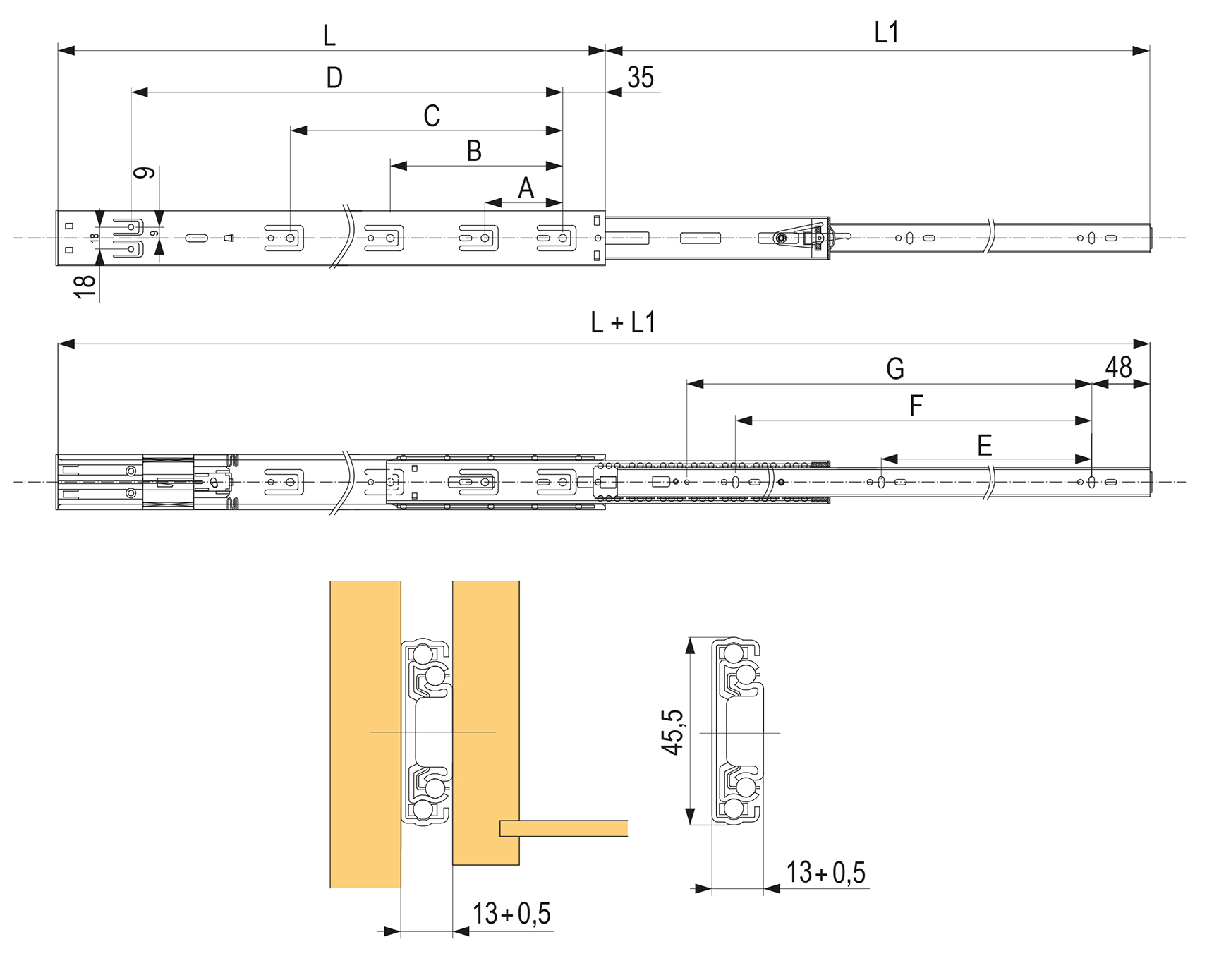 | Type of extension guide | Full extension slide |