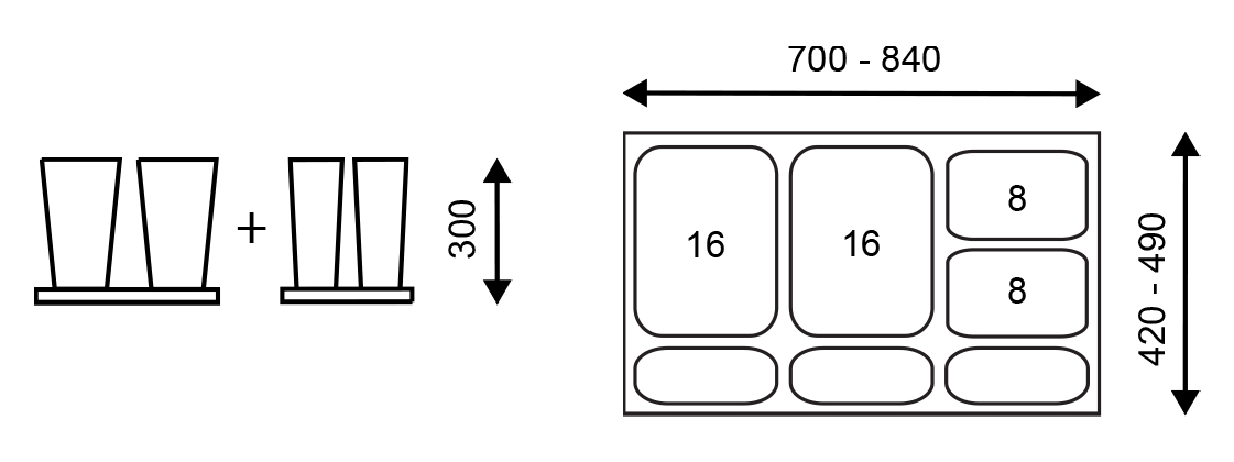 - Perforated bottom of base for cutting to fit a drawer, can be adjusted to the depth and width of the drawer, up to 5 cm (shortening).