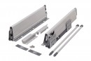 Slide with damping and side plates including 1 pair of railings. Length 400mm, height 204(225mm). Loading capacity do 35kg. Color grey. All parts needed to assemble the front drawer in this kit. For inned drawer front panel need to be ordered.