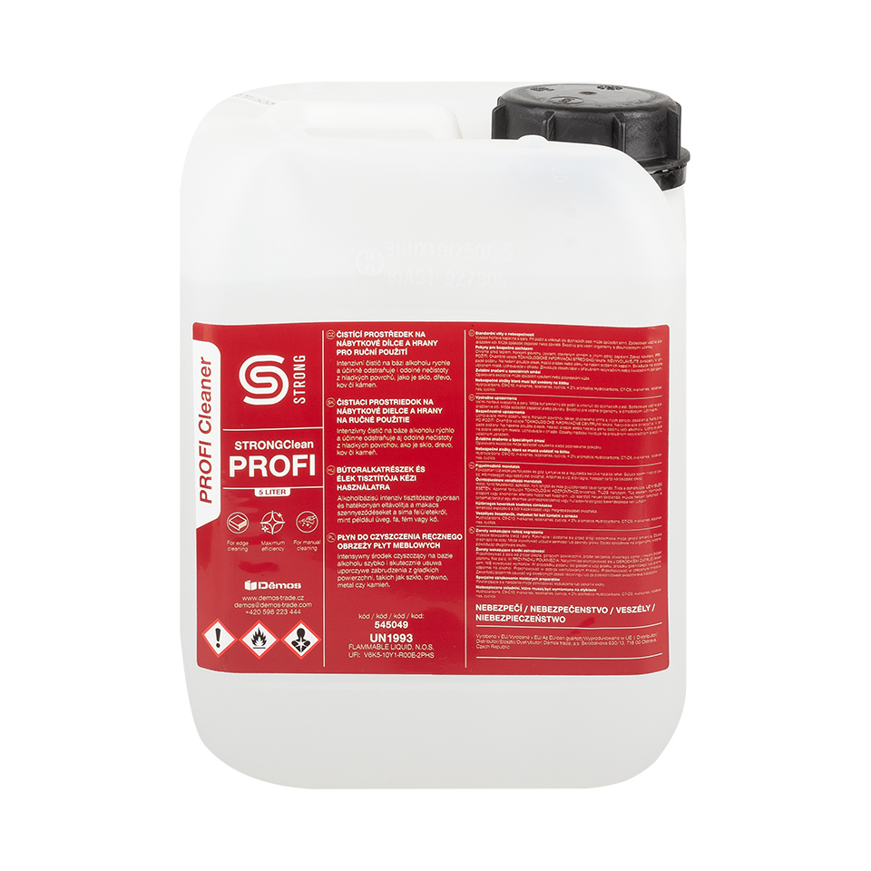 StrongClean PROFI is an intensive liquid alcohol-based cleaner with a citrus scent, designed to remove the toughest dirt. Its high solvent content quickly dissolves contaminants such as rubber residues, bitumen, resins, oils, adhesive residues, markers, and scuffs. For final cleaning of matte and glossy surfaces, use StrongClean FINISH.