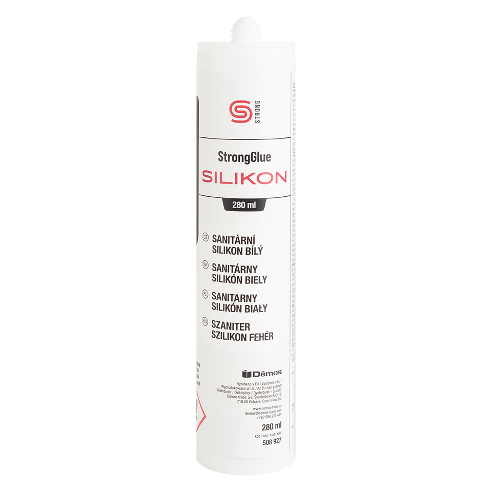 StrongGlue Sanitary Silicone is a one-component acetoxy silicone sealant designed for perfect sealing in bathrooms, kitchens, and other wet environments. Upon contact with air moisture, it cures into a strong, permanently elastic bond that reliably protects against water, mold, and cleaning agents.