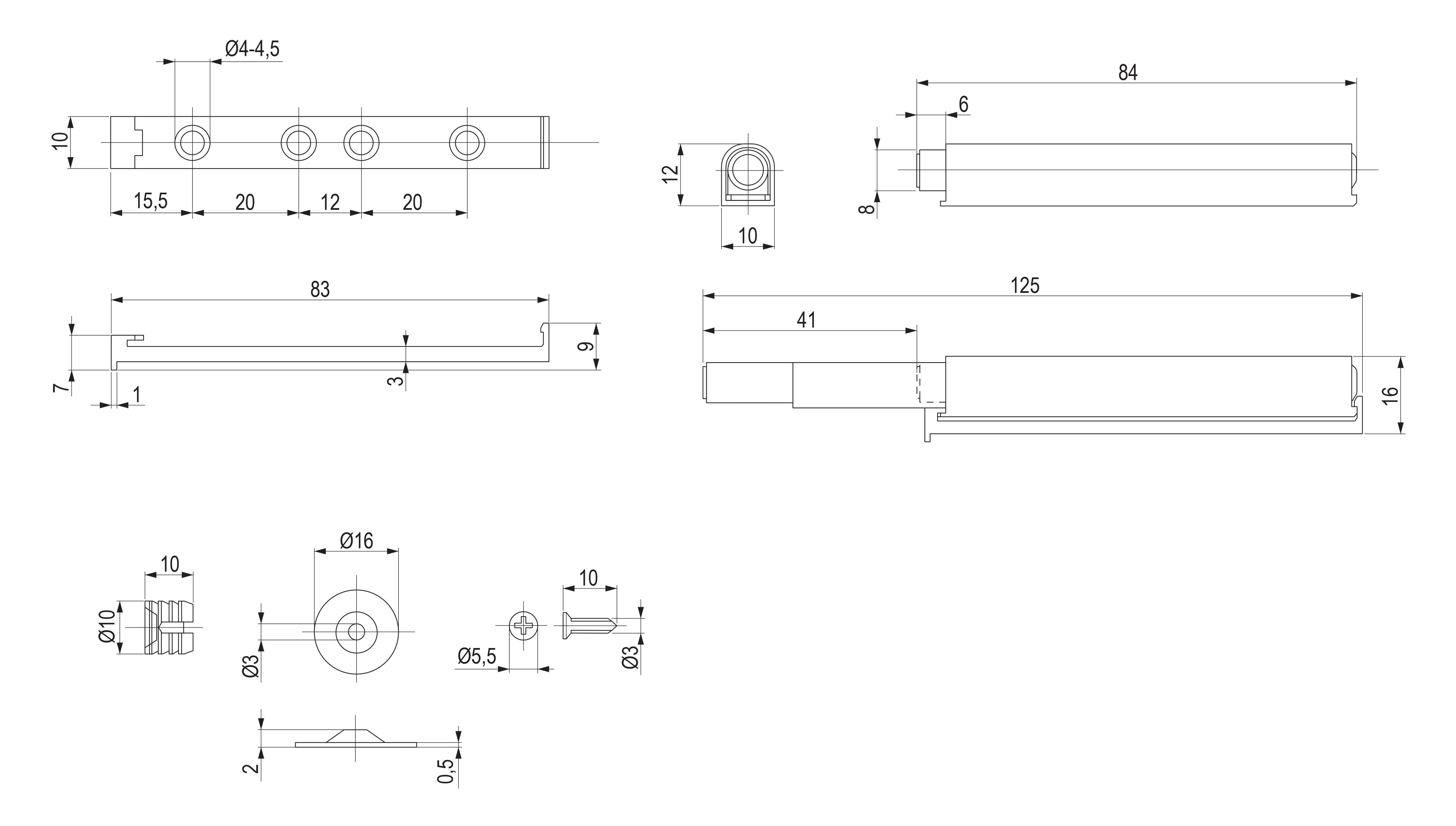 Mechanism for opening the door without a handle with an adapter for screwing into the body, with a magnet. The package includes a mechanism, an adapter for screwing into the body, a counter for the magnet to be screwed on, a screw for screwing the counter to the door and a 10 mm dowel for screwing the counter into the 10 mm hole.