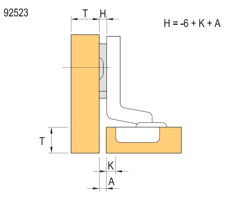 Mini inset slide-on hinge without damping, including H0 plate opening angle 95° maximum door thickness 22 mm
