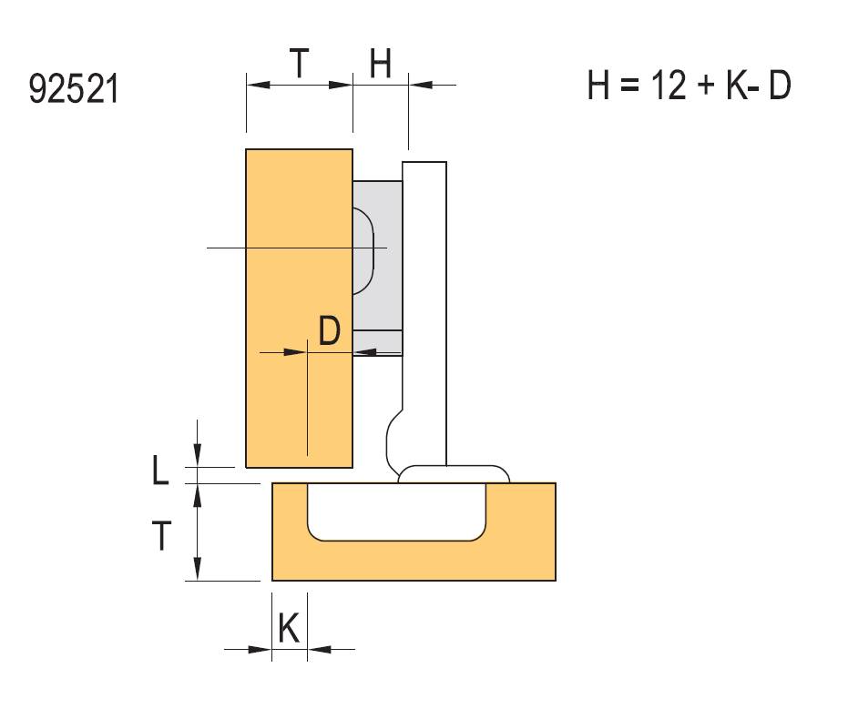 Full overlay slide-on mini hinge with plate, including H0 plate on screw opening angle 95° maximum door thickness 22 mm