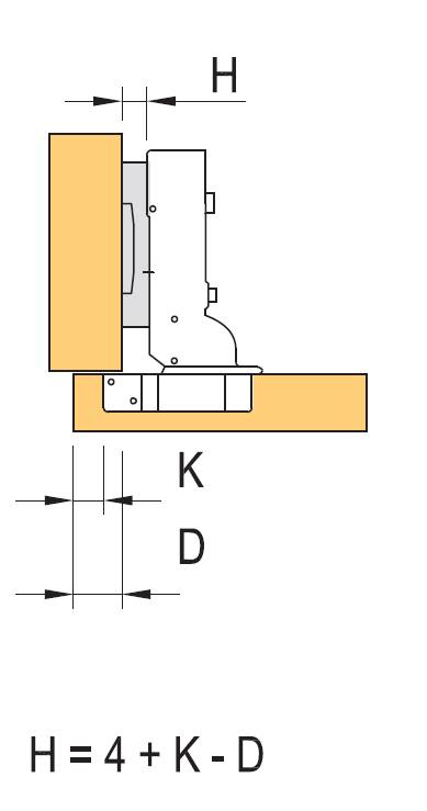 Half overlay hinge with integrated damping. Opening angle 110°. Screw distance 45 mm and 9,5 mm from cup center. Cup 35mm. Recommended plates: H0 screw 92590T, H0 Euro 92591T.