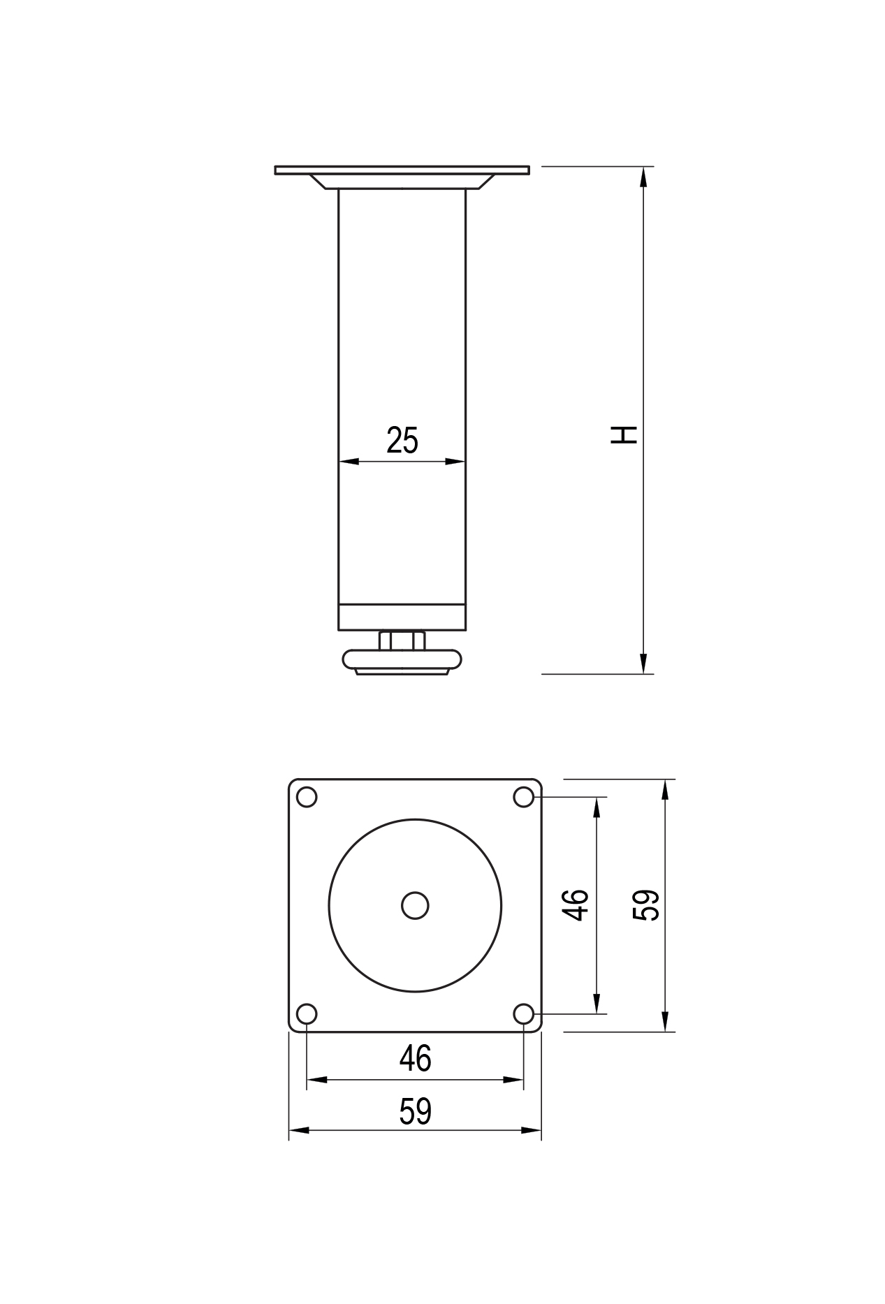 Diameter 25 mm, height 100 mm