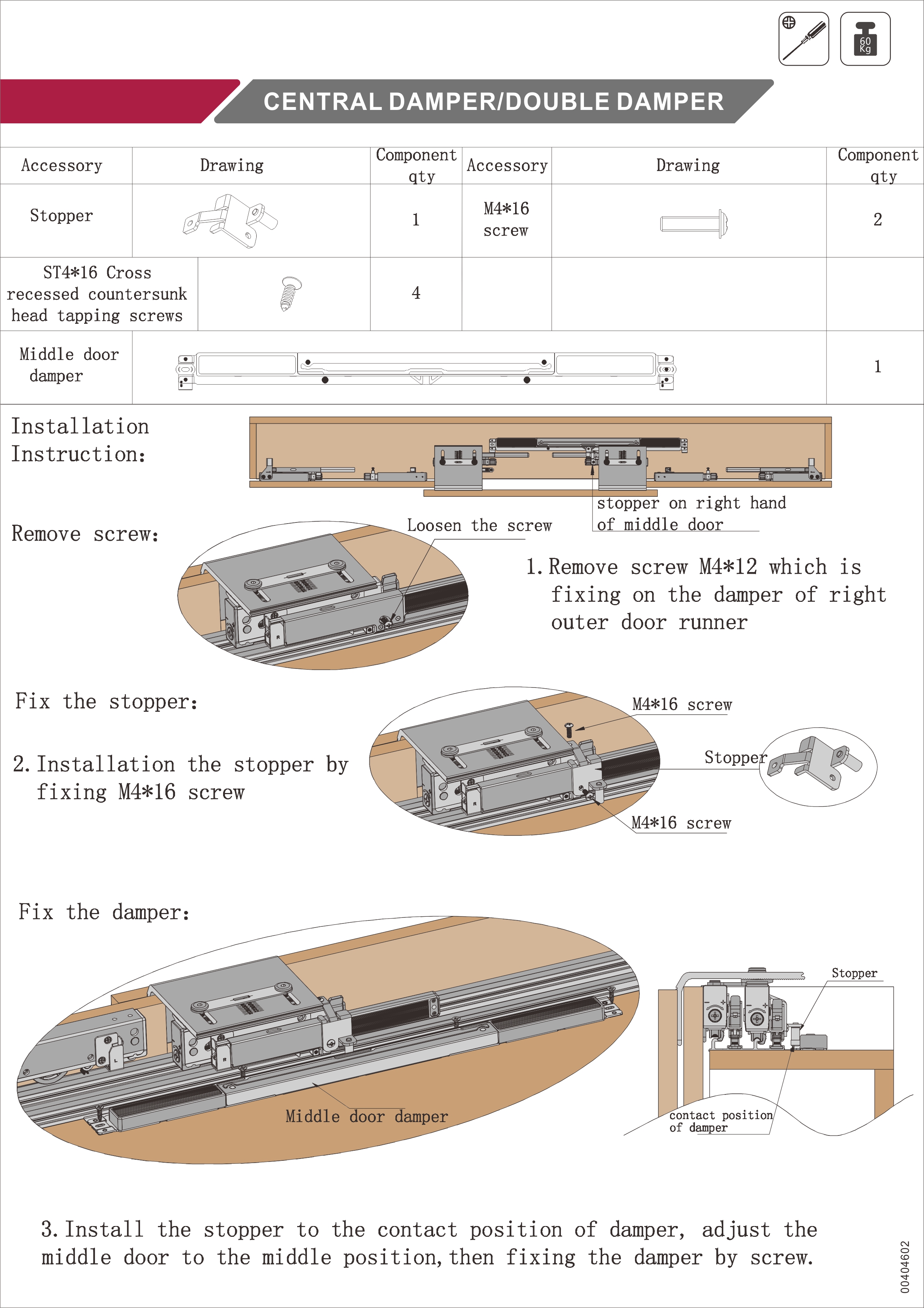 StrongLine Planio anti-collision damping set for three-leaf cabinet. Prevents rear wings from collapsing when opening.