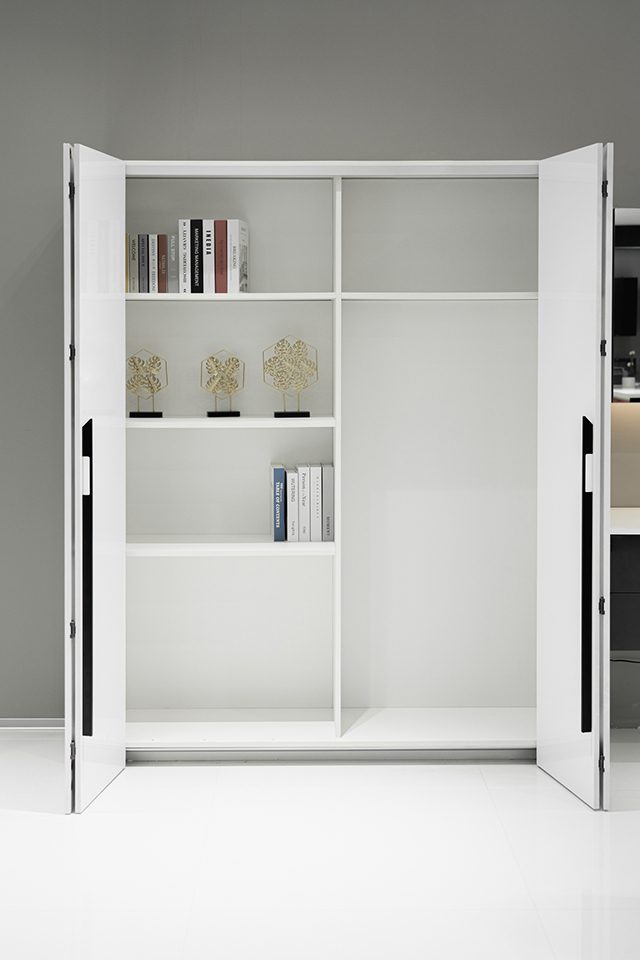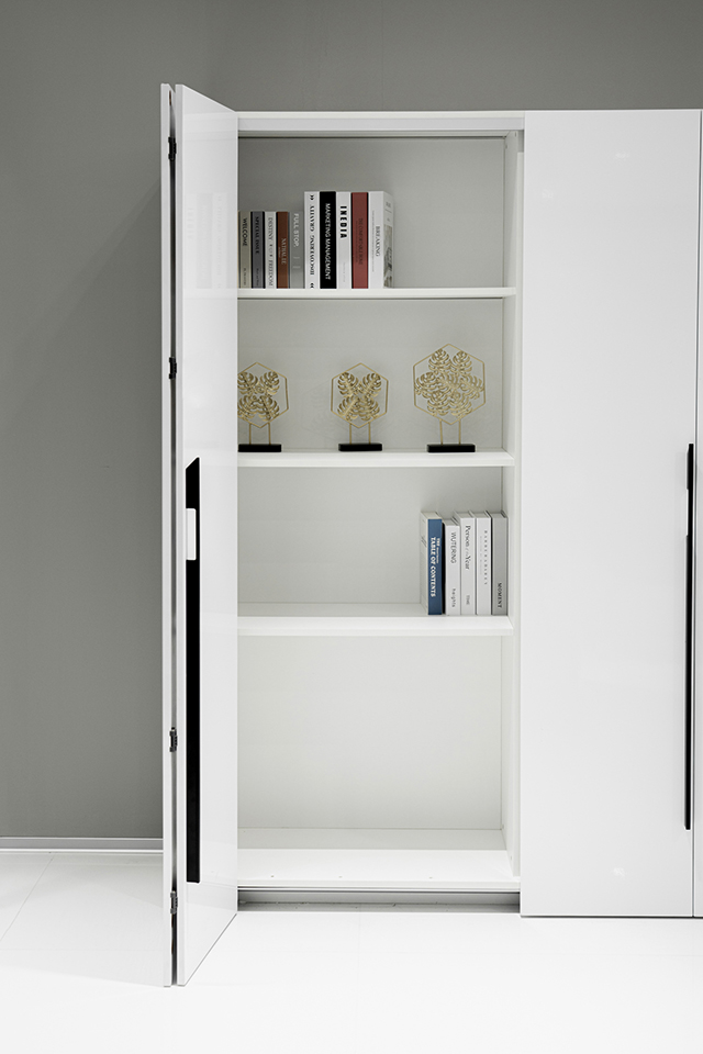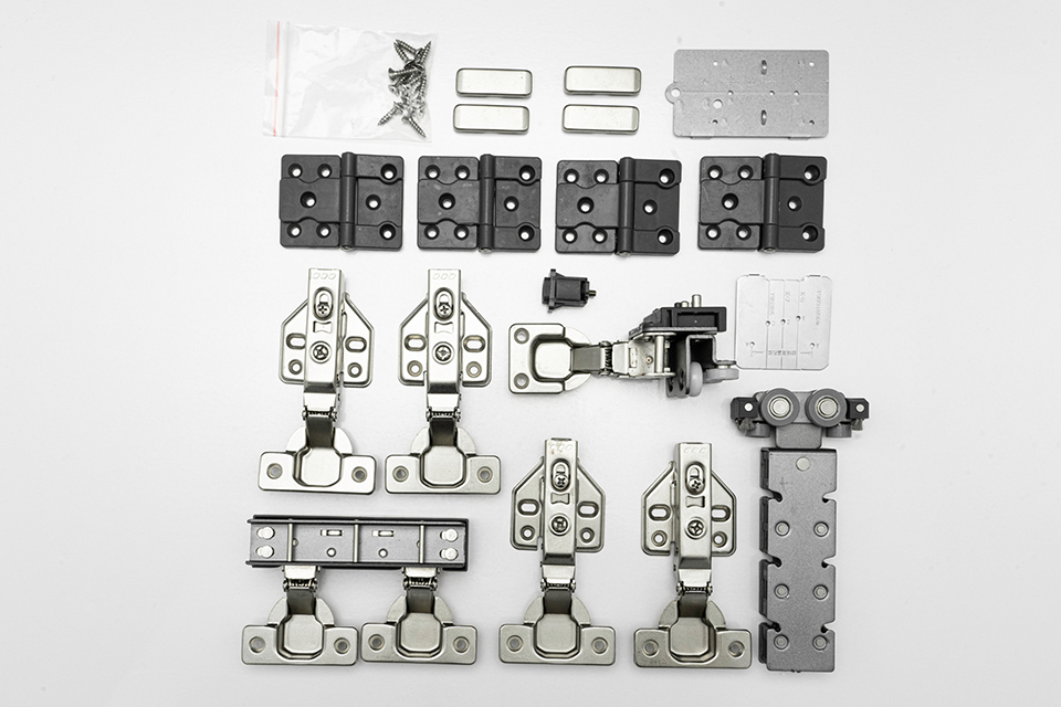 Fitting set for double folding doors with bottom track. Maximum size of one door leaf: 600 × 2500 mm.