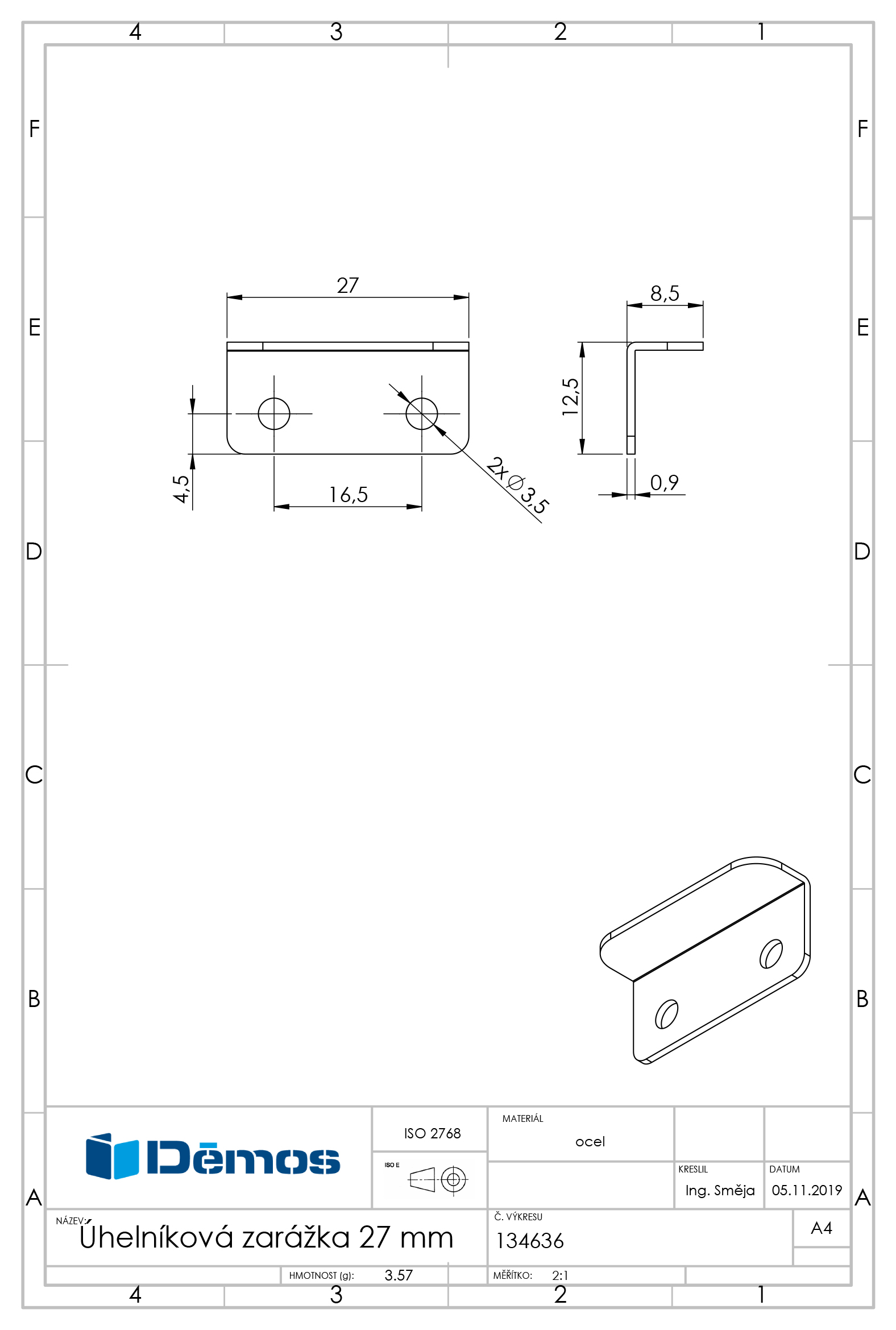 Length 27 mm, total width 12,5 mm a hieght 8,5 mm. Material thickness 1 mm. Hole pitch is 16,5 mm. Angled striking plate for securing lock bolts and shooting bars.
