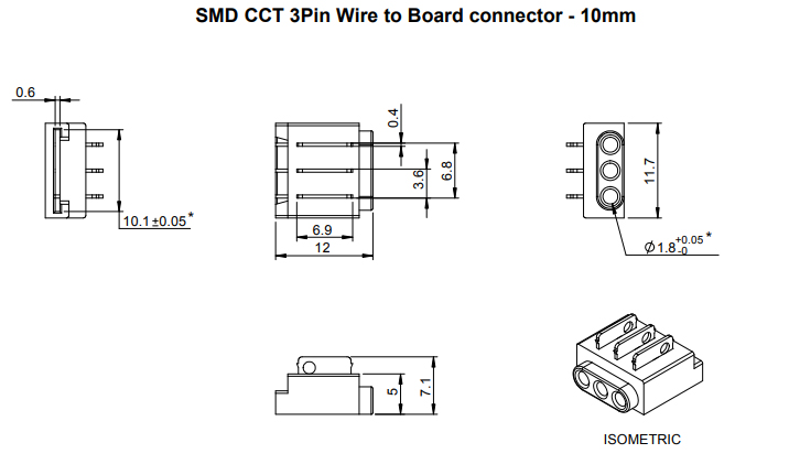 Connector for connecting CCT LED strip - cable (3-core cable). Suitable for LED strips of width 10mm - see Related assortment. The connector is placed onto the LED strip and the contact pins are pressed into the strip using pliers; the pins then latch-in into the strip to create the connection. The connector is therefore intended for single use. For use in profiles with a minimum width of 12mm and height 5,1mm.