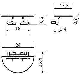 The length of the end piece extends the length of the strip on each side by 13 mm in the upper part and by 2 mm in the milled part.