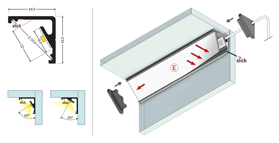 The light angle of 30° / 60° allows you to direct the lighting as needed.
