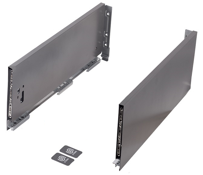 Drawer sidewall set (left + right) w/ integrated drawer back holders. Drawer front clips are snapped-in inside the sidewall front.
