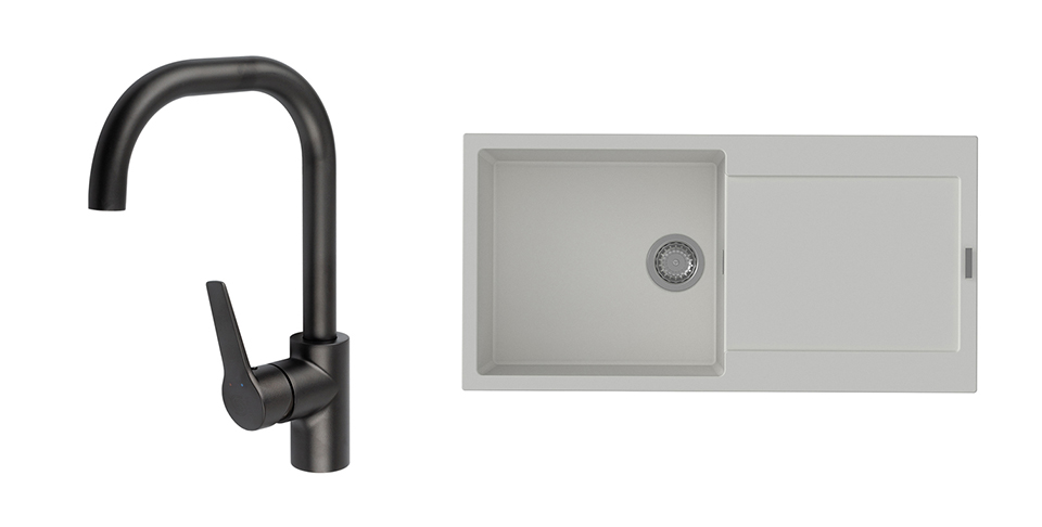 StrongSinks S3 Set dřez Zala 1000 1000x500mm granit bílá + Baterie Garonne černá