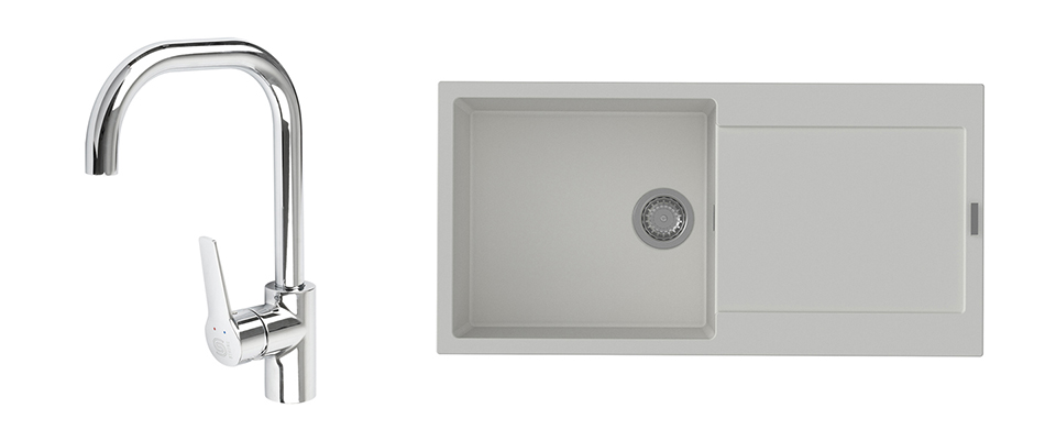 StrongSinks S3 Set dřez Zala 1000 1000x500mm granit bílá + Baterie Garonne chr.