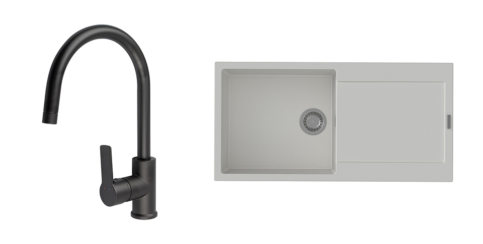 StrongSinks S3 Set dřez Zala 1000 1000x500mm granit bílá + Baterie Loira černá