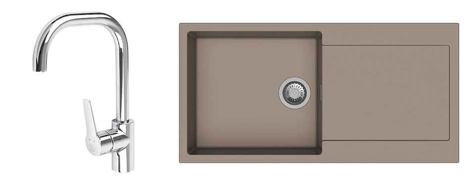 StrongSinks S3 Set dřez Zala 1000 1000x500mm granit hnědá + Baterie Garonne chr.
