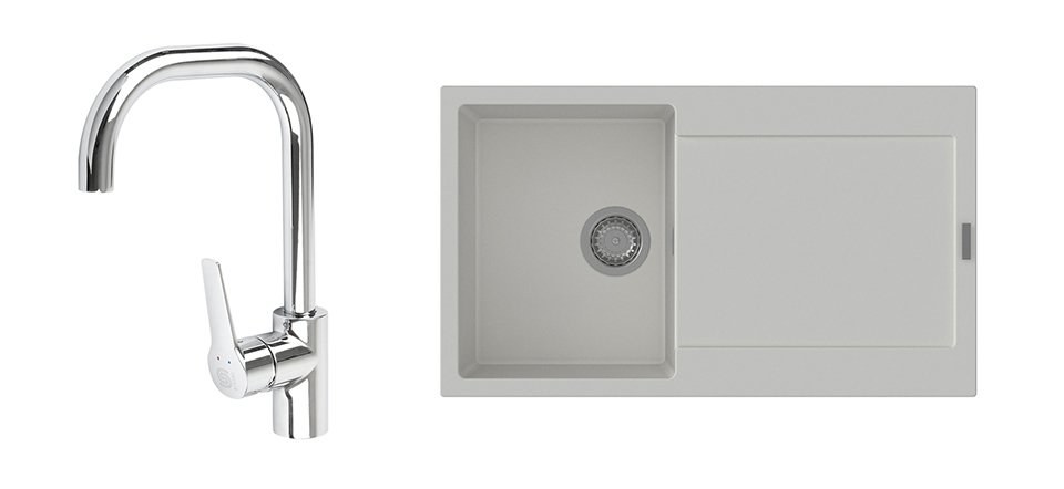 StrongSinks S3 Set dřez Zala 860 860x500mm granit bílá + Baterie Garonne chrom