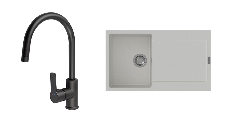 StrongSinks S3 Set dřez Zala 860 860x500mm granit bílá + Baterie Loira černá