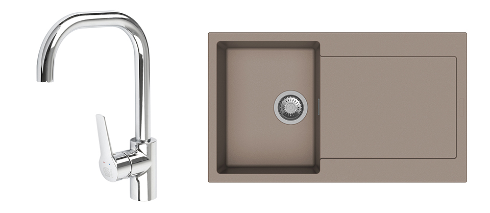 StrongSinks S3 Set dřez Zala 860 860x500mm granit hnědá + Baterie Garonne chrom