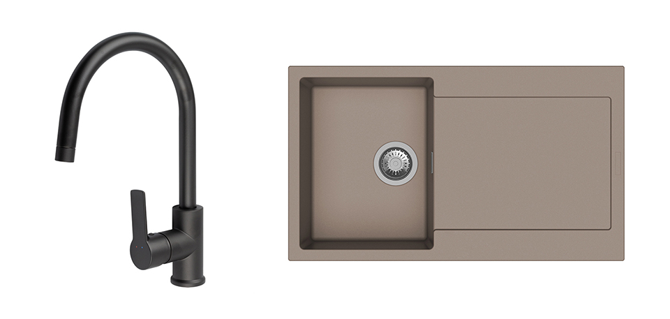 StrongSinks S3 Set dřez Zala 860 860x500mm granit hnědá + Baterie Loira černá