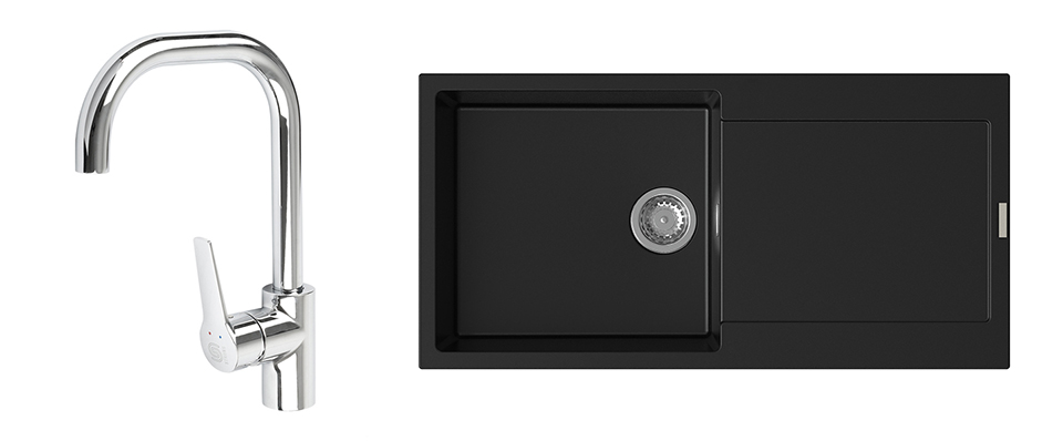 StrongSinks S3 Set Sink Zala 1000 1000x500mm granite black + tap Garonne chrome