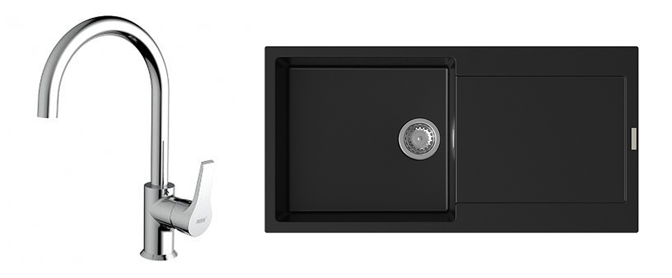 StrongSinks S3 Set Sink Zala 1000 1000x500mm granite black + tap Rhona chrome