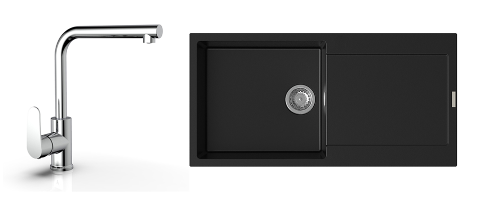StrongSinks S3 Set Sink Zala 1000 1000x500mm granite black + tap Stréva chrome
